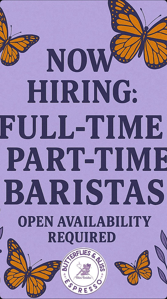 12/02 - Butterflies & Bliss Espresso now hiring full time/part time baristas - WA